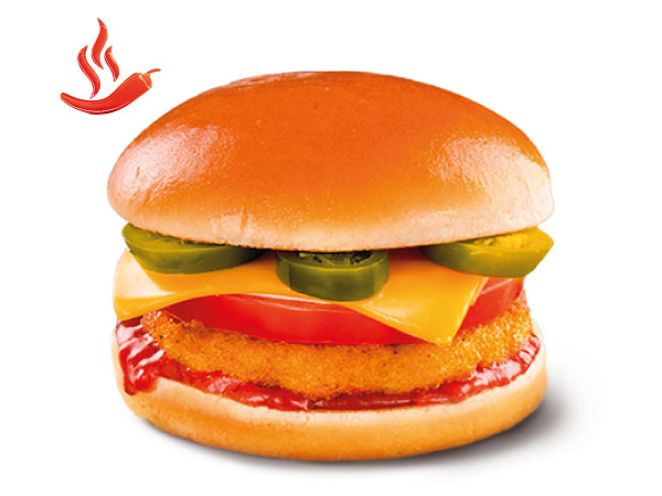 Булочкакотлета куринаяпомидорсыр Хохландперец халапеньосоус